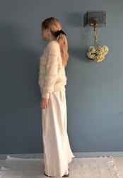 表情のある編み地ですが、形がシンプルなのでどんなアイテムにも合わせやすいです。