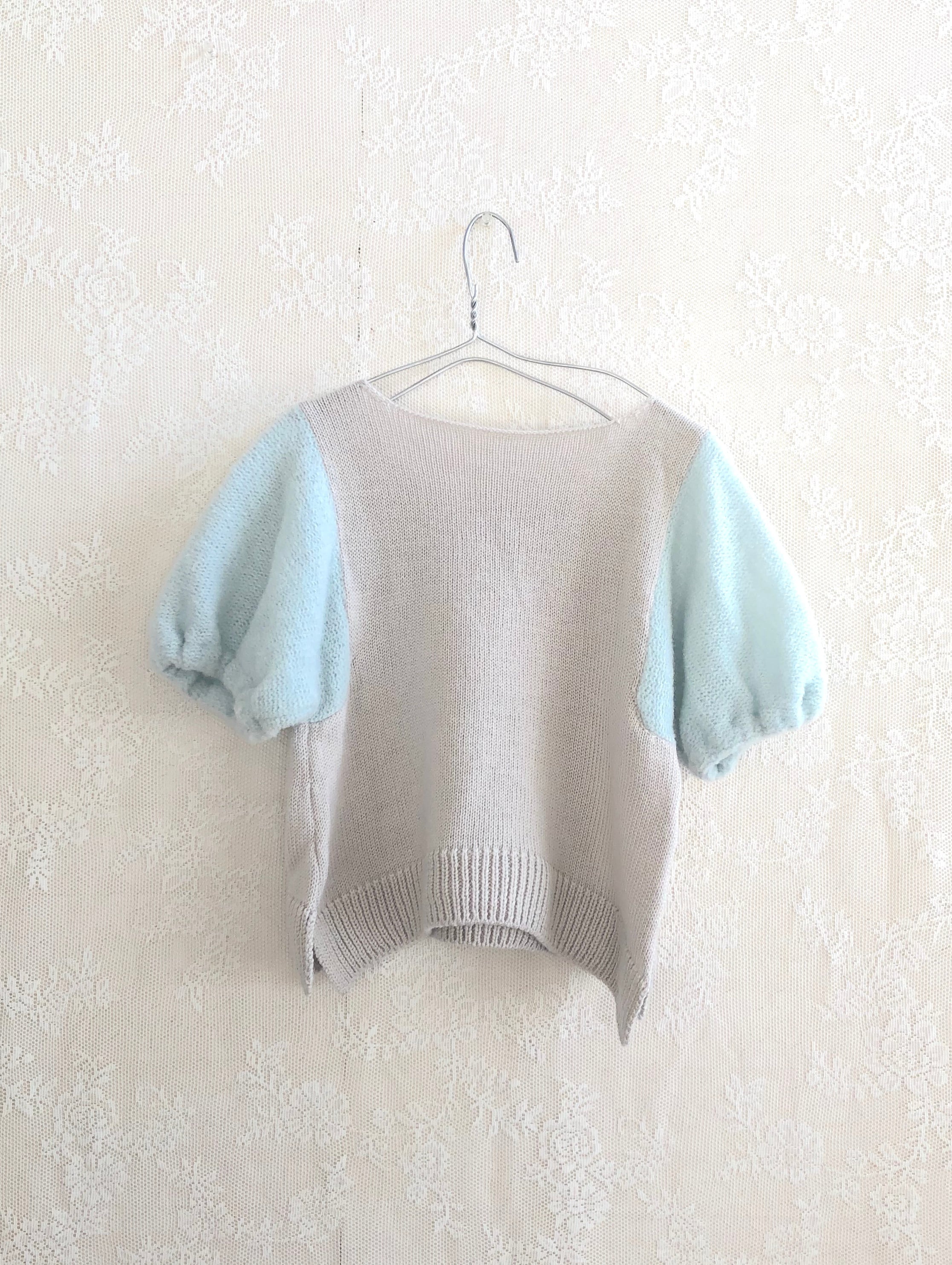 90サイズの子供用のパンダニットです。お袖はふんわりとしたループヤーンで編まれています。